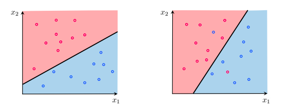 These models are most similar to regression. Rather than learning a line\model that best represents the data we want to learn a line\model that best separates (discriminates) between different classes. For a binary classifier we can write this as: