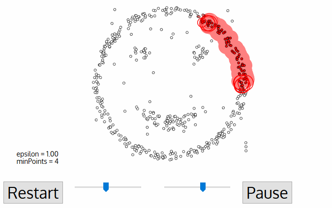 The following animation illustrates how the DBSCAN algorithm works:
